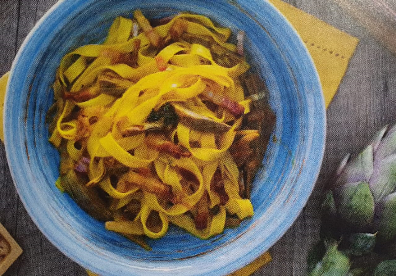 Sugestão de vinho: os aromas florais com toque de fruta do Bianco Toscana IGT combinam perfeitamente com essa saborosa massa que une a suavidade da alcachofra com o sabor marcante da pancetta. Outras opções incluem o friulano Colli Orientali Ribolla Gialla DOC e um dos vinhos símbolo do Lazio, o Franciacorta.