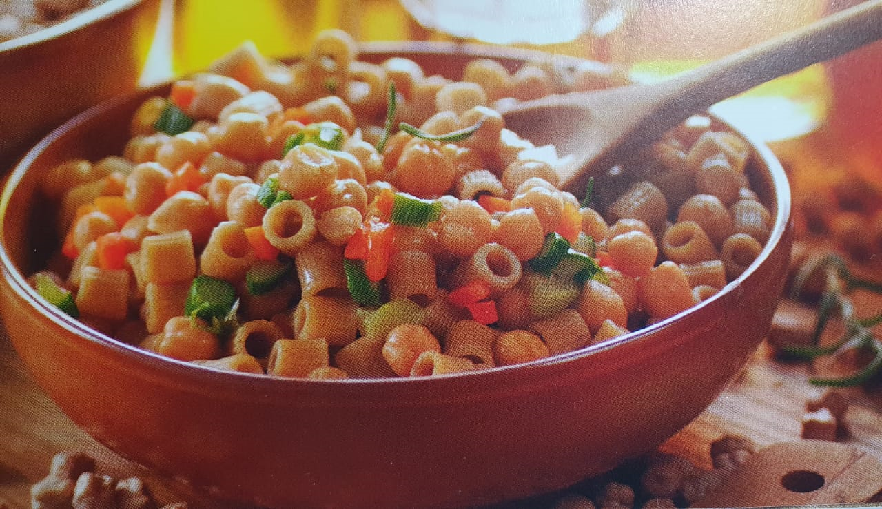 5) Cozinhe o macarrão em água fervente com sal e, enquanto está cozinhando, esmague um terço do grão-de-bico até se tornar um purê.