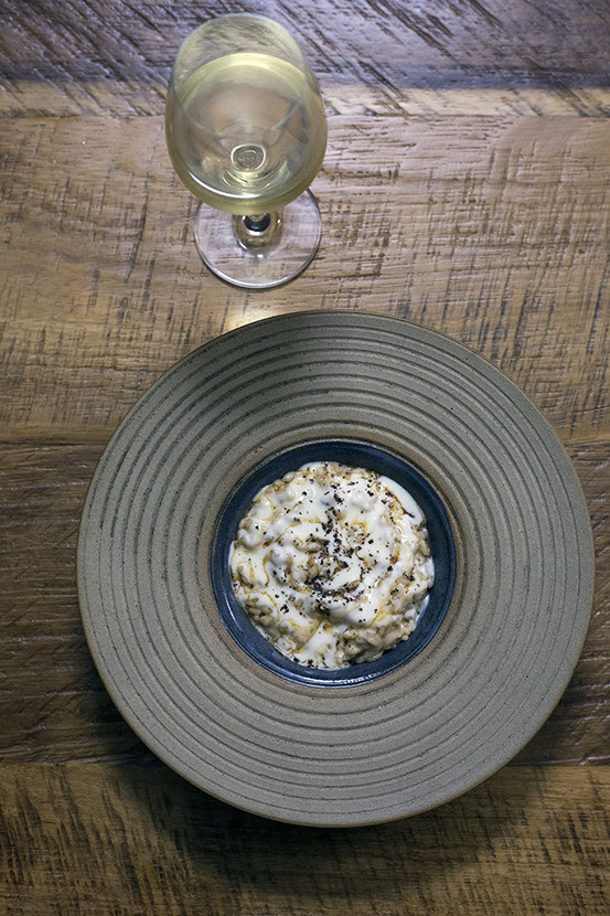 Embora leve manteiga, a mantecatura, na verdade, é um processo de finalização que dá ao risoto a cremosidade que lhe é característica. Adicione, portanto, a manteiga (gelada) em cubos e promova seu derretimento e incorporação ao arroz com movimentos de onda. Quanto perceber que a manteiga foi completamente incorporada, adicione os 15g restantes de Grana Padano DOP ralado à mão, que também deve ser incorporado com movimentos de onda.